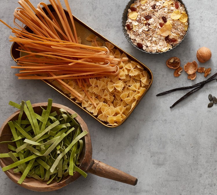 Unser Teigwarensortiment ist vielfältig. Von Bandnudeln, Spaghetti, Fussilli, Makkaroni oder Frischpasta bis hin zu tiefgefrorener Pasta in verschiedenen Variationen findet sich für jeden Geschmack etwas. Reis- und Hülsenfrüchte runden unser Sortiment ab.
